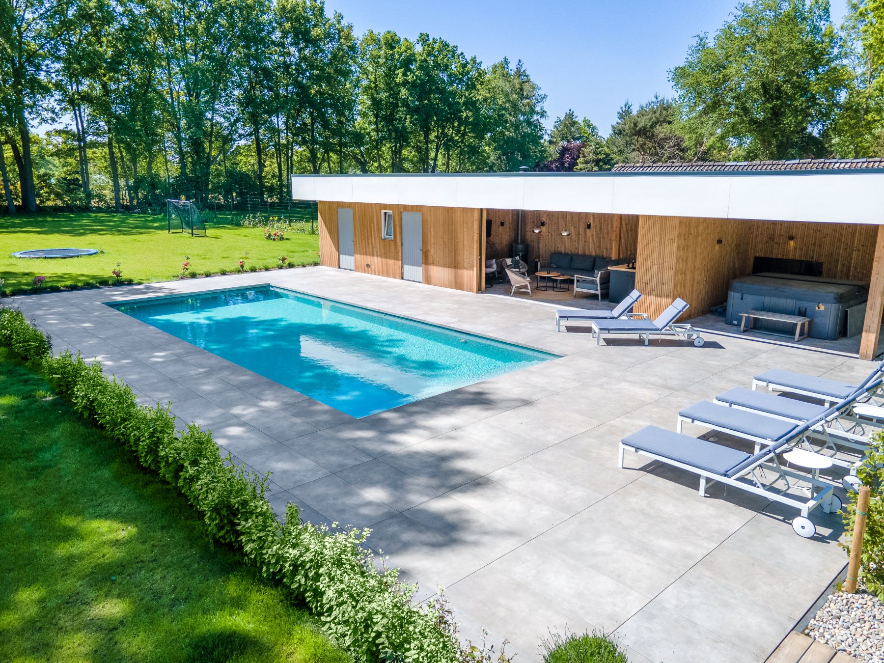 Keramische tegels met natuursteenlook bieden de uitstraling van leisteen, basalt of graniet, zonder de nadelen van poreusheid of verkleuring. Deze stijl past goed bij klassieke tuinen, opritten en buitenruimtes met een tijdloze uitstraling.