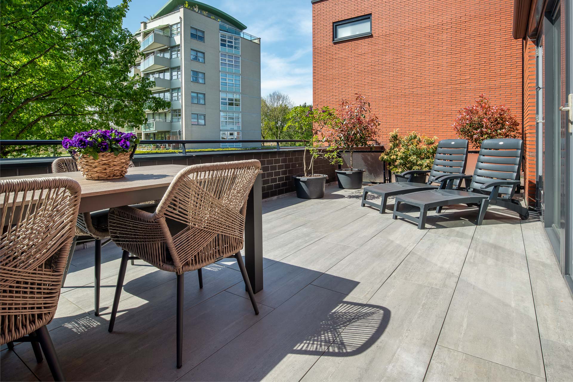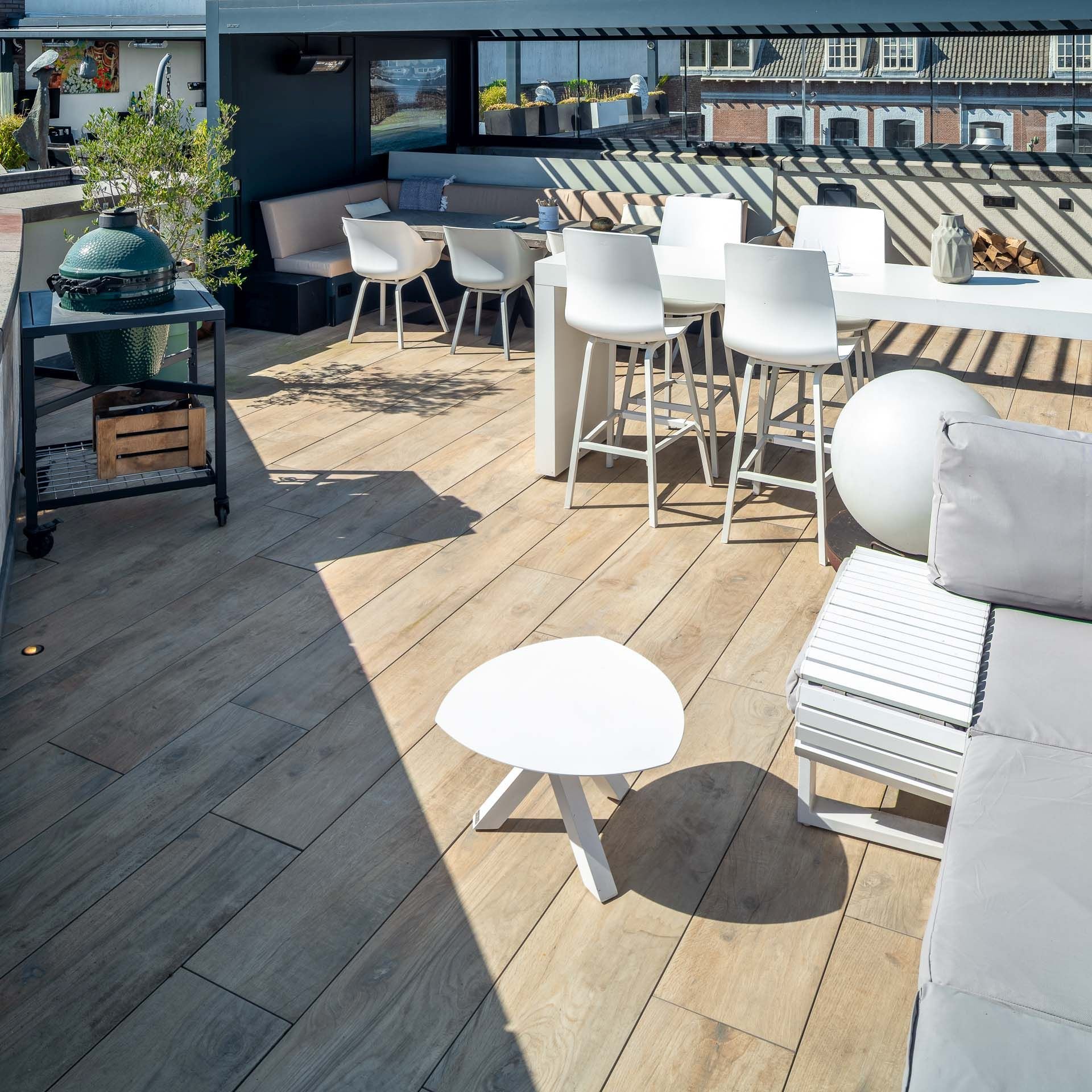 In het prestigieuze project te Vlaardingen hadden wij de eer om de dakterras tegels te leveren die een verfijnde, lichte vintage-uitstraling hebben. Deze elegante tegels, met een afmeting van 30x120x2 cm, zijn met uiterste precisie geplaatst op tegeldragers. Deze doordachte keuze garandeert een optimale afvoer van water, waardoor het terras zijn luxueuze uitstraling behoudt zonder hinder van waterophoping. Bent u benieuwd naar een prijsopgave? Vraag dan geheel vrijblijvend een offerte aan. Voor meer informatie over deze hoogwaardige tegels kunt u gerust contact met ons opnemen. U bent ook van harte welkom in onze showtuin om onze tegels persoonlijk te bekijken.