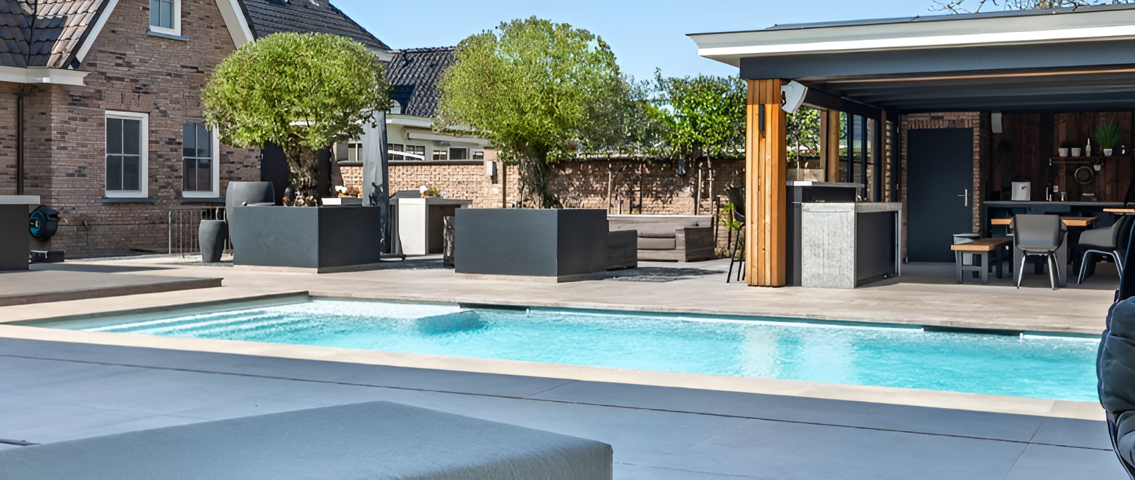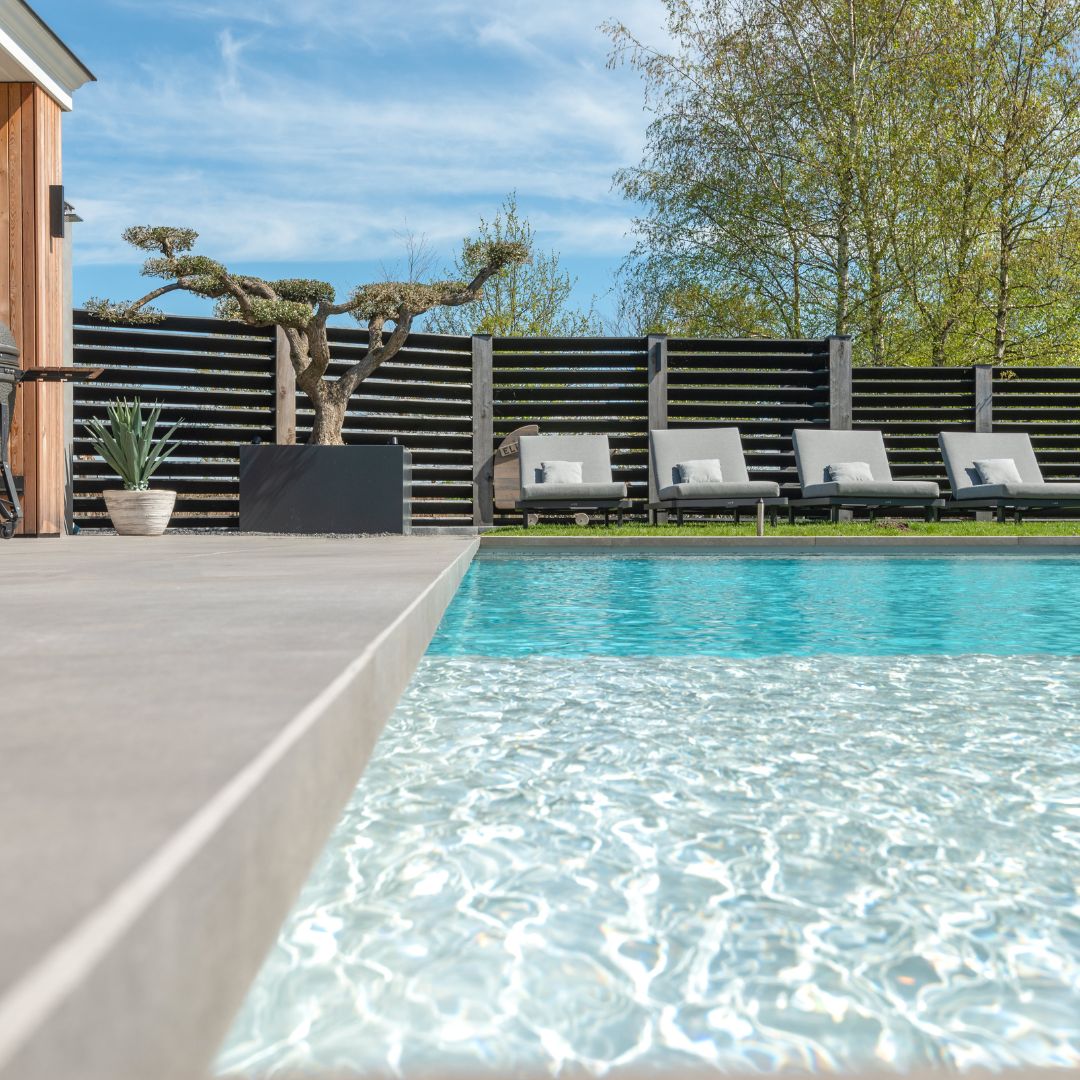 Onlangs hebben wij het voorrecht gehad om de smaakvolle en luxueuze tuin van dit project te verfraaien met een verfijnde selectie keramische terrastegels in diverse formaten. Wij hebben tevens op maat gemaakte zwembadtegels en -randen verzorgd, waarbij twee elegante formaten, namelijk 60x120x2cm en 120x120x2cm zijn toegepast in de verfijnde Tortora-kleur, zorgvuldig gevoegd en gelegd in een gestabiliseerd grof zand. De zwembadtegels, in het formaat 120x120x2cm en met een elegante neus van 5 cm, stralen een verfijnde schoonheid uit die vanuit het water in al zijn pracht zichtbaar is. Onze steenlook keramische tegels, geïnspireerd op de subtiele pracht van Luserna-steen, zijn versierd met delicate schilfertjes die enkel bij het juiste licht zichtbaar zijn, wat een authentieke, verfijnde uitstraling biedt. Bent u geïnteresseerd in deze moderne tegels? Neem gerust contact met ons op voor meer informatie of bezoek onze showtuin. Benieuwd naar een prijsopgave? Vraag dan geheel vrijblijvend een offerte aan door op onderstaande knop te klikken.