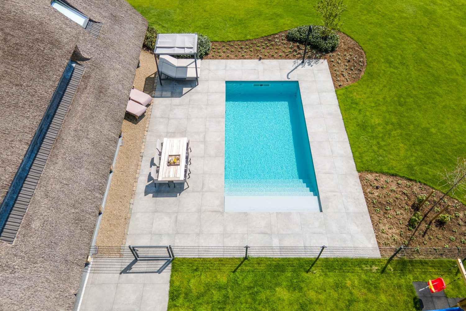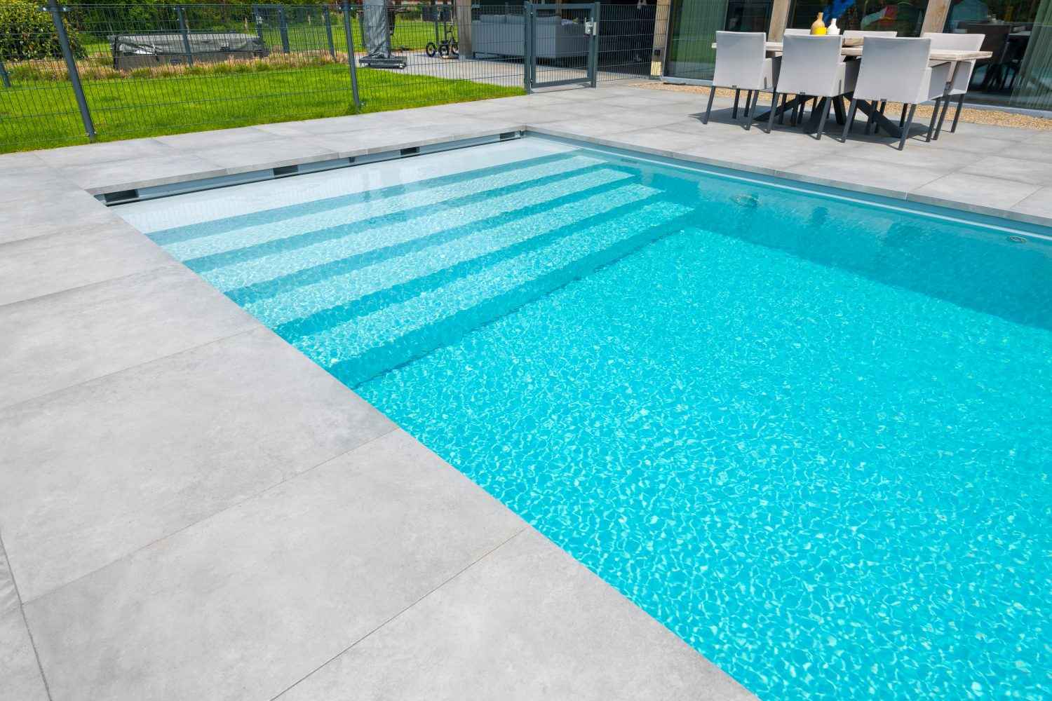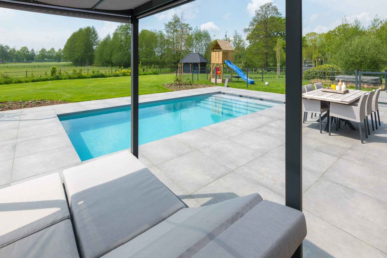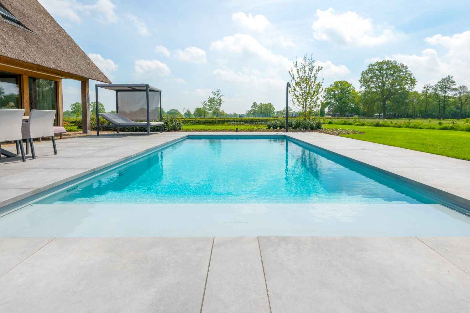 Onlangs hadden wij de eer om de keramische betonlook zwembadtegels te verzorgen voor een bijzonder project in de omgeving van Bathmen. De tegels een elegante afmeting van 90x90x2 cm, zijn vakkundig geplaatst in drainagemortel en hebben door de verfijnde verstekhoeken een strakke afwerking die het terras aan alle vier zijden laat aflopen. Het resultaat is een zwembad dat zowel luxe en stijl uitstraalt als de praktische voordelen van keramiek biedt. Voor meer informatie over deze tegels of ons maatwerk, verwelkomen wij u graag in onze showtuin. Neem gerust contact met ons op voor verdere details. Wij staan klaar om u met deskundigheid en persoonlijke aandacht te adviseren. Wanneer u beniewd bent naar een prijs, dan kunt u een vrijblijvende offerte aanvragen door op onderstaande knop te klikken.